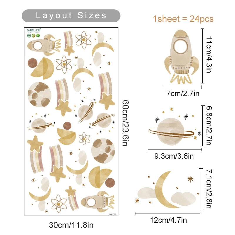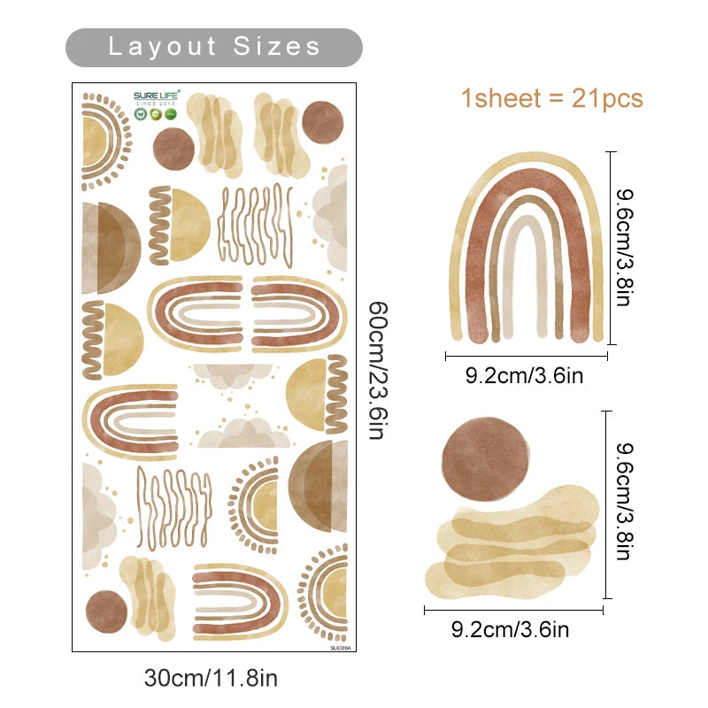Transforme o quarto do seu bebê em um universo encantador com este adesivo de parede boho em tons de laranja queimado e aquarela.