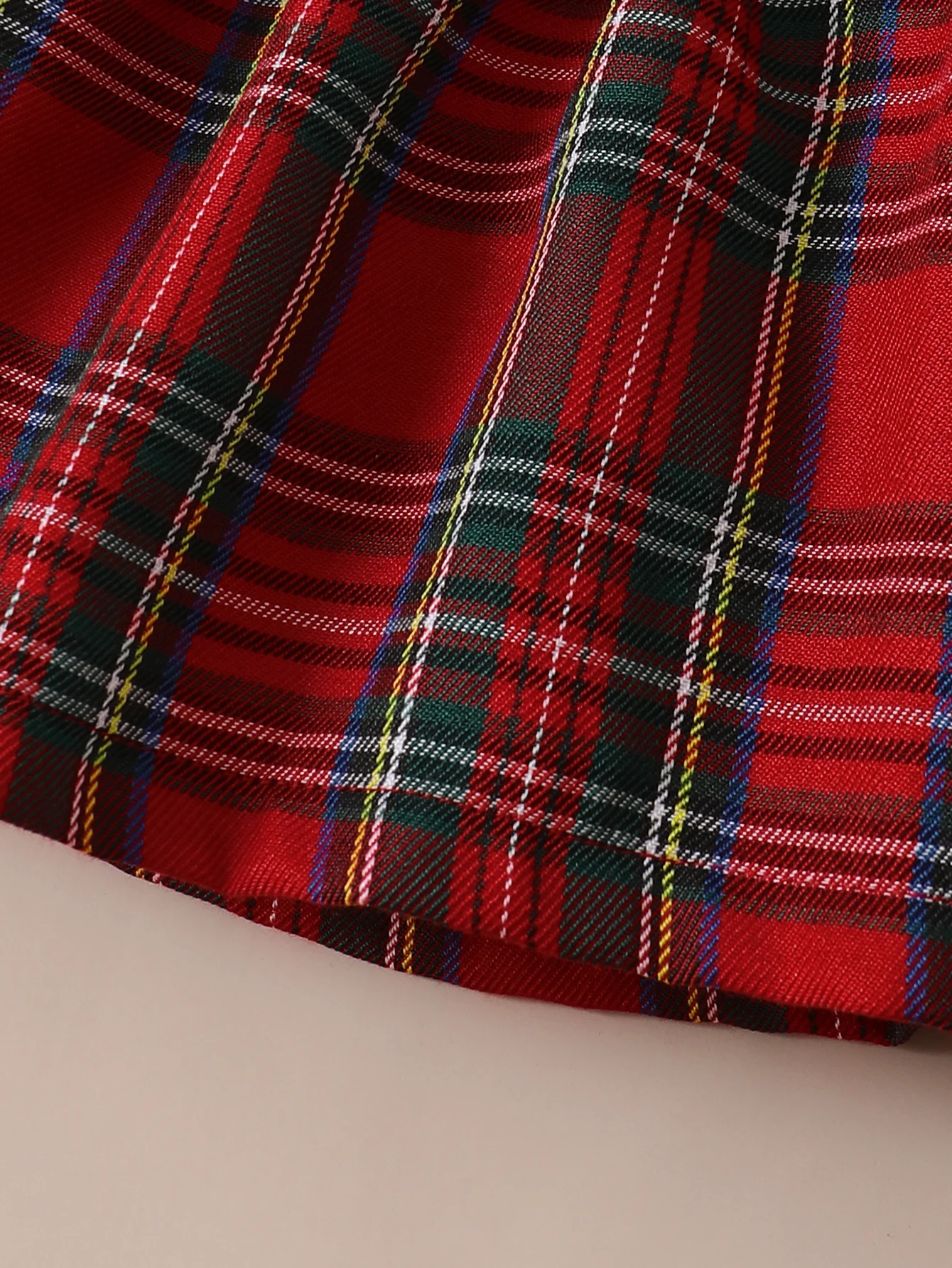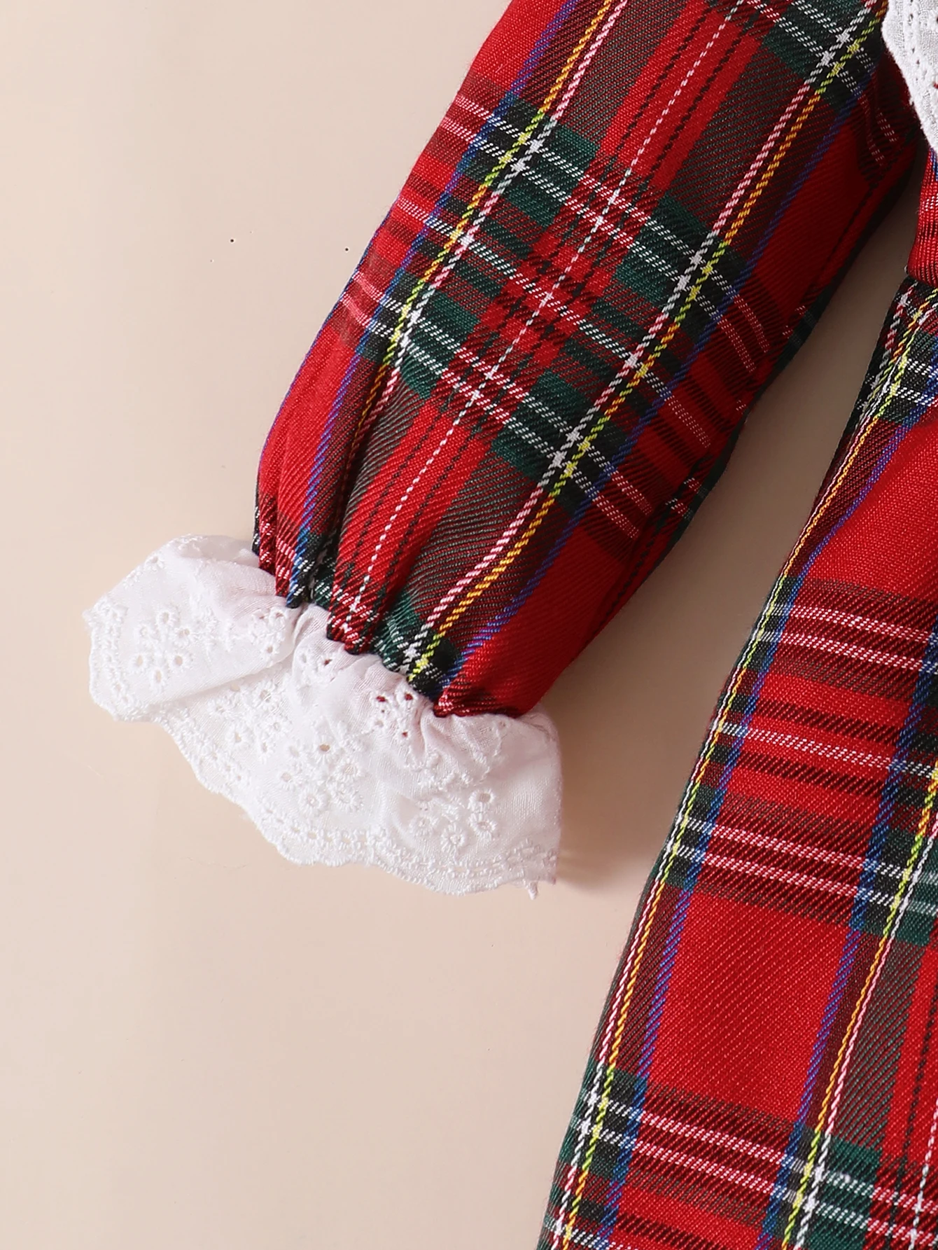 Seu bebê vai brilhar com este vestido xadrez vermelho com babados, perfeito para os dias de primavera e outono.