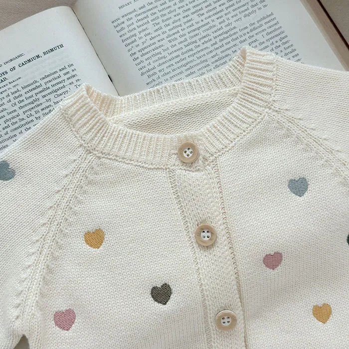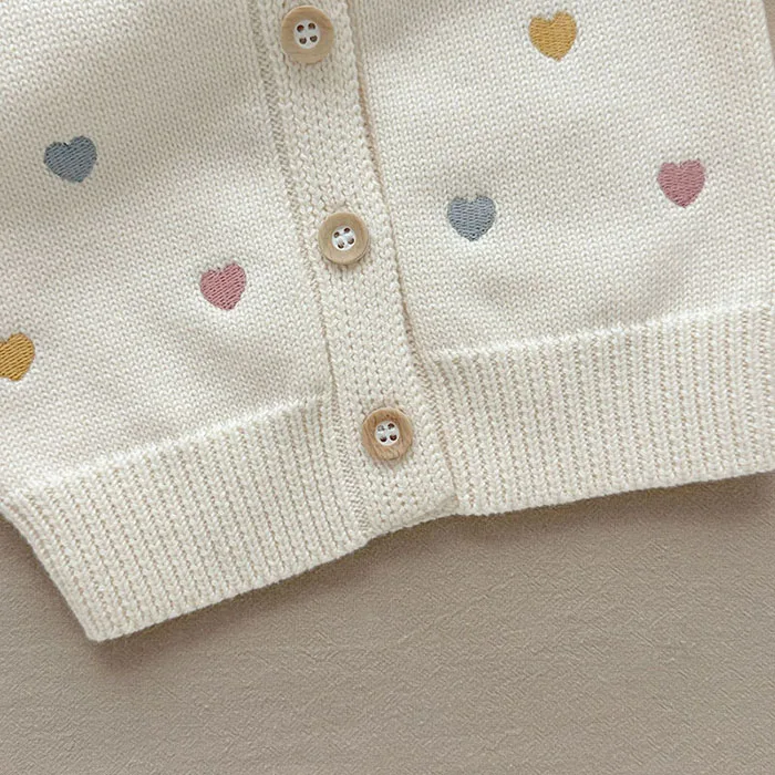 Cardigan Branco com Corações Coloridos – Amor e Estilo em Cada Detalhe!