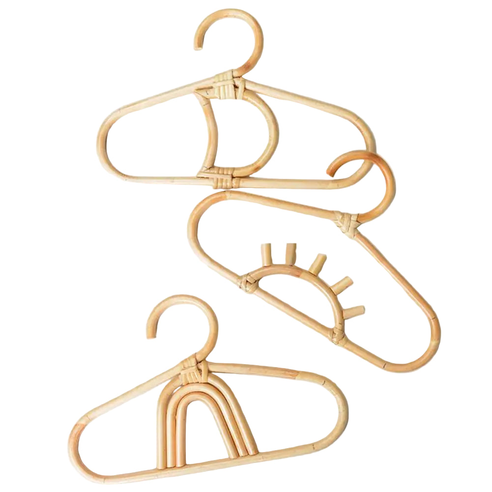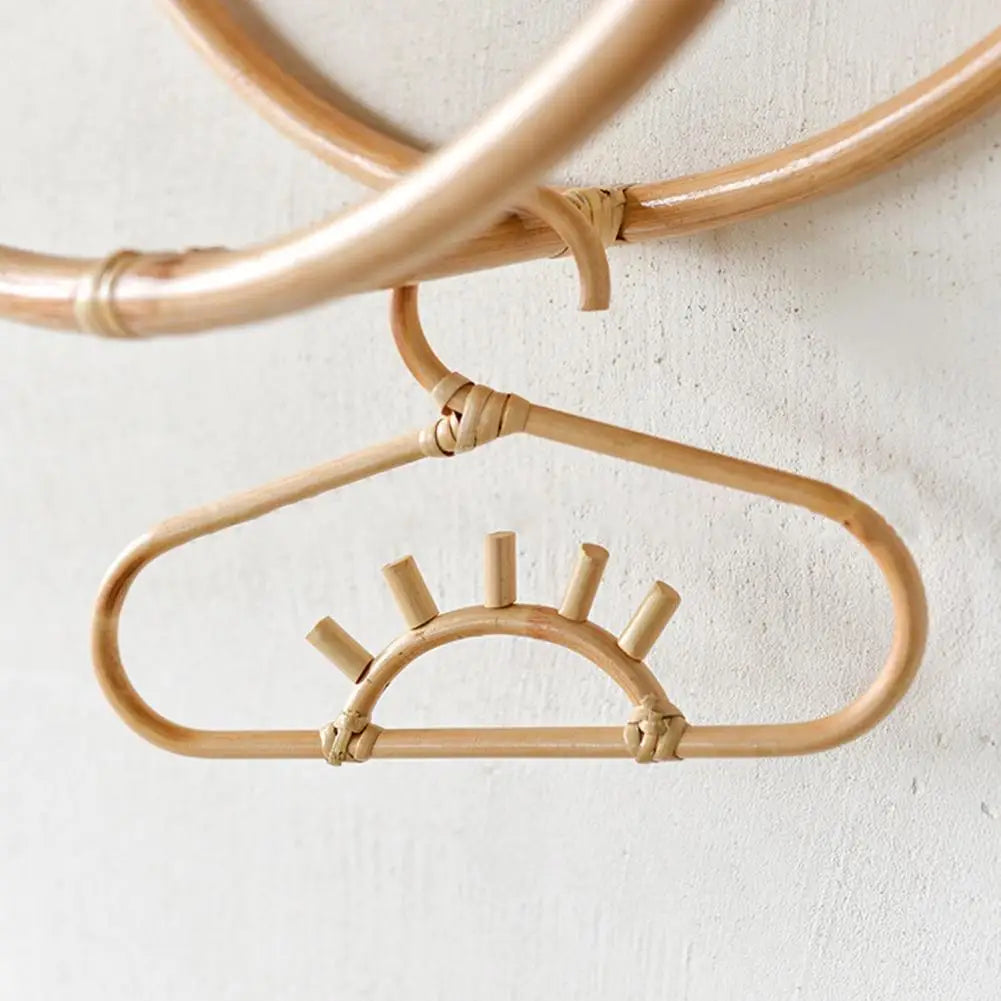 Adicione um toque natural e encantador ao quartinho do seu bebê com este cabide infantil de rattan, feito à mão com um design delicado de arco-íris, sol e lua.