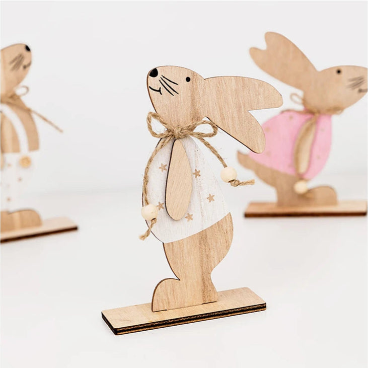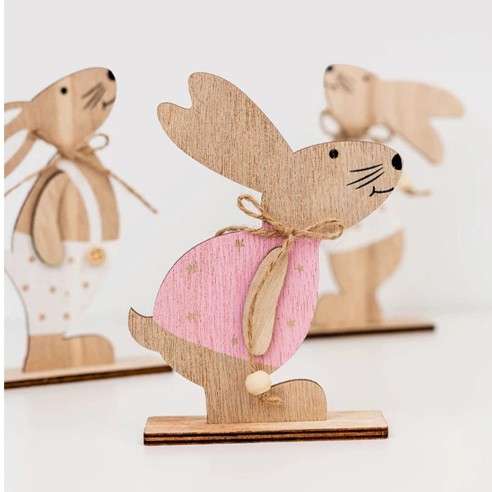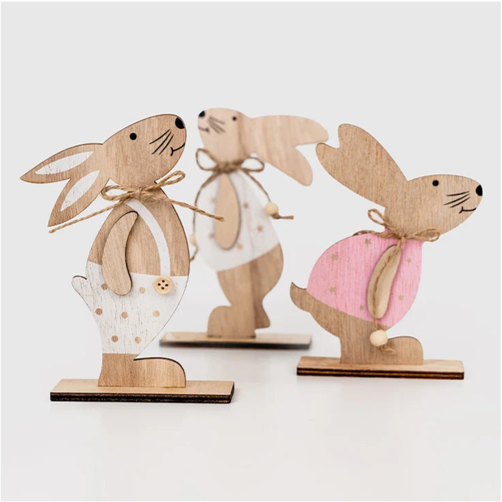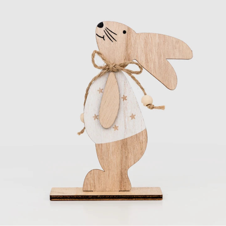 Encante seu lar com este adorável enfeite de coelho em madeira, perfeito para trazer um toque natural e delicado à decoração.