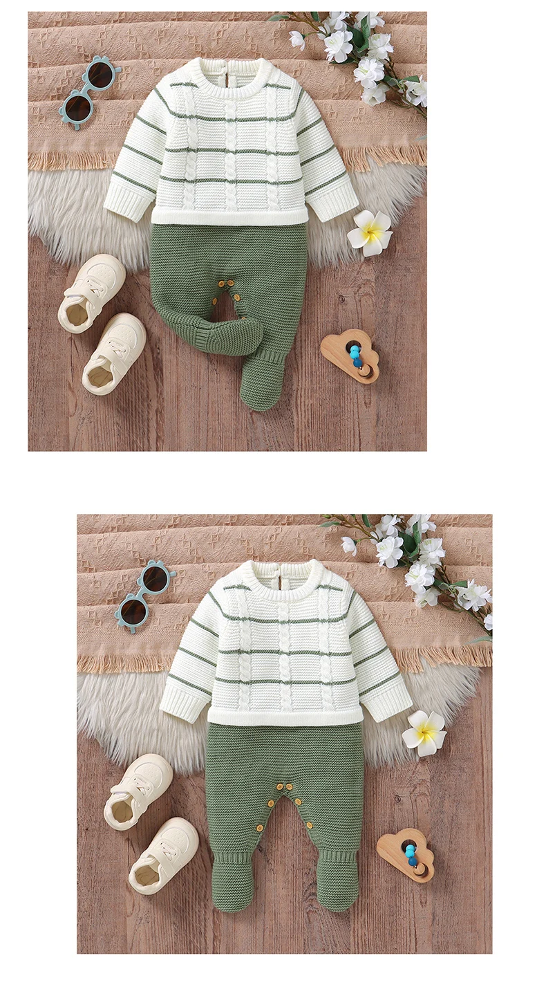Combine este macacão listrado com uma touca de tricot e sapatinhos macios para manter seu bebê quentinho e estiloso, perfeito para fotos ou passeios ao ar livre!