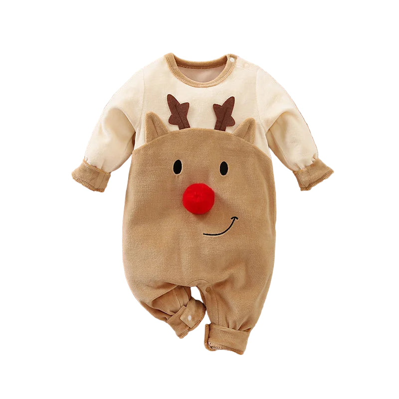 Deixe o seu bebê ainda mais encantador neste Natal com este macacão 3D, perfeito para meninos e meninas de 0 a 18 meses.