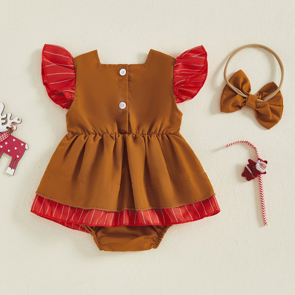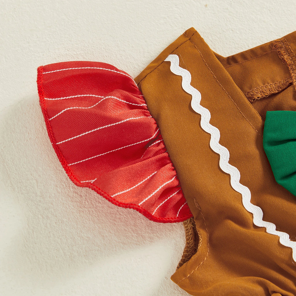 Deixe o espírito natalino brilhar com este romper de Natal para bebês meninas, feito com um mix suave de algodão e poliéster, perfeito para o clima do verão e para os dias de festa em família.
