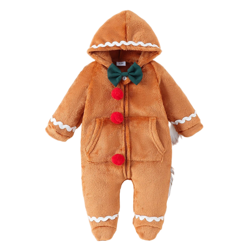 O visual é de festa, perfeito para o Natal: apresenta bolinhas decorativas vermelhas em pompom e uma charmosa gravatinha borboleta verde. O capuz completa o look decorativo, transformando seu bebê em um boneco de Natal irresistível.