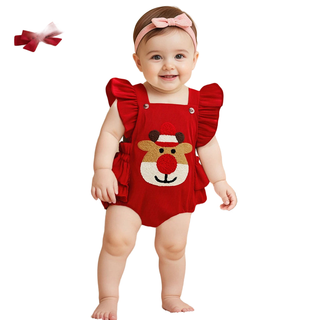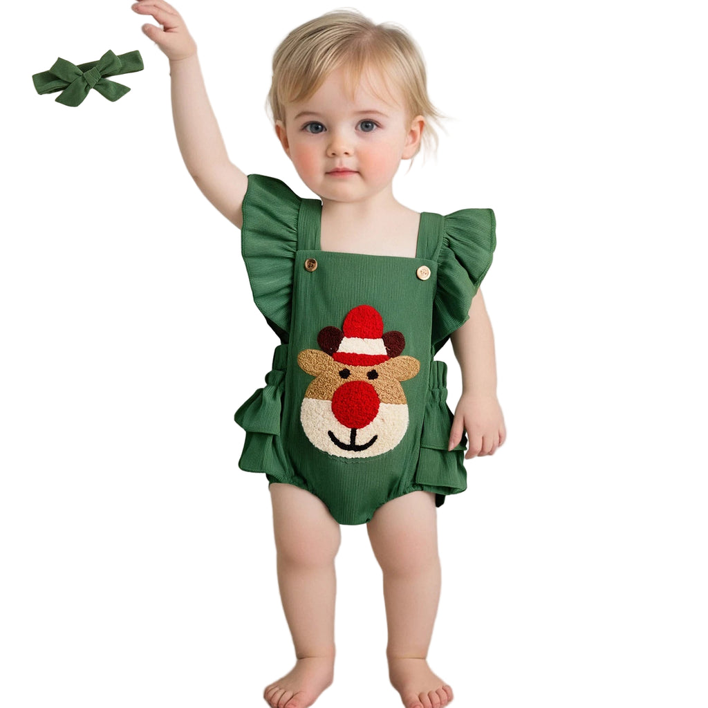 Macacão de Natal Bordado com Faixa de Cabeça -2pçs