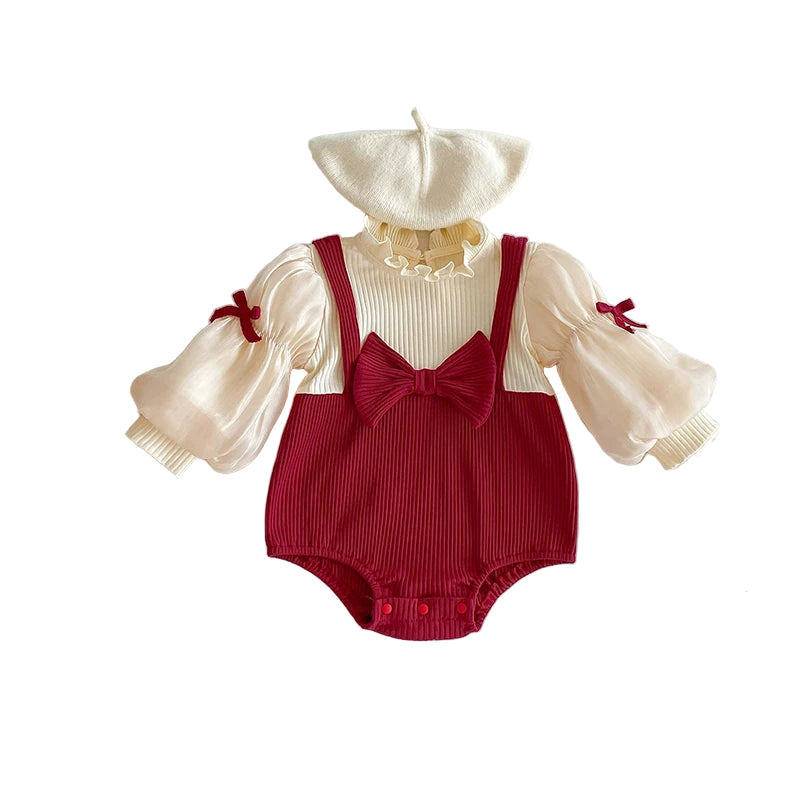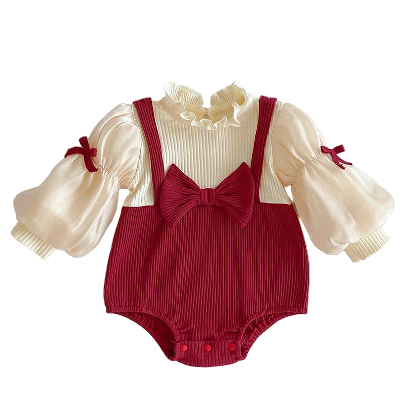 Combine o macacão com uma tiara de laço ou sapatinho de tricot vermelho para criar o look natalino perfeito e registrar lembranças cheias de amor!