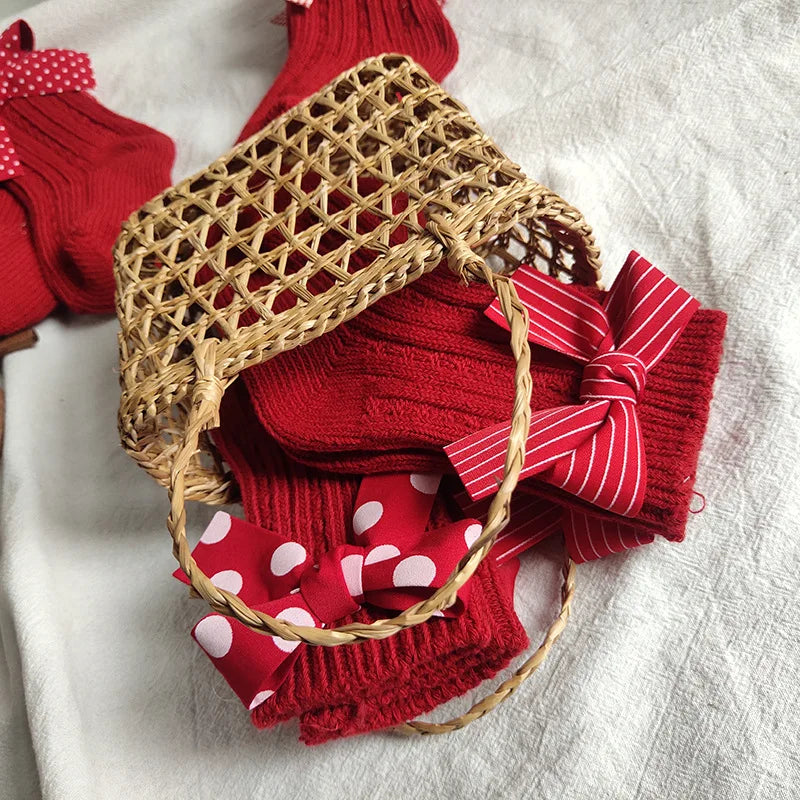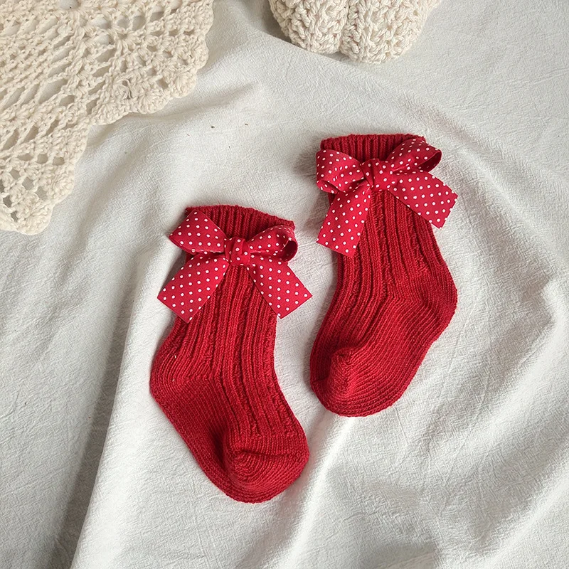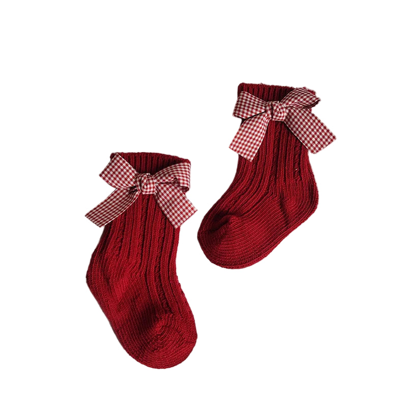 Para usar estas Meias, a dica é que, devido ao seu Comprimento (acima da panturrilha) e à cor Vermelha, elas funcionam como polainas ou meias-calças finas. Para maximizar o visual Estilo Fofo e o calor, use-as combinadas com um bodysuit de cor neutra ou um vestido/saia curto. Isso destaca o Arco Grande e a cor Vermelha como um acessório de Natal elegante e funcional, mantendo as pernas do bebê aquecidas.