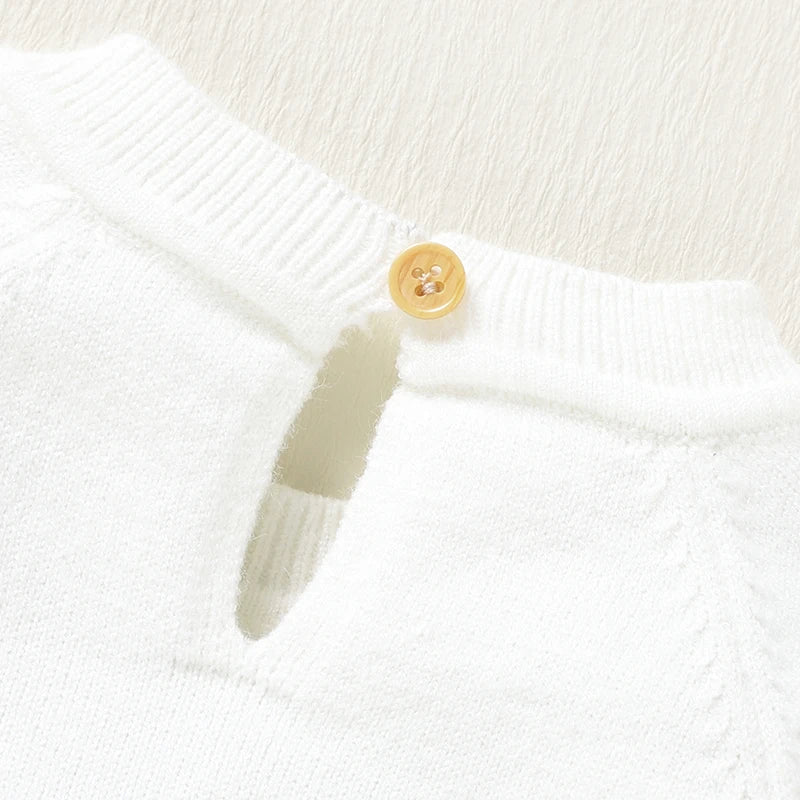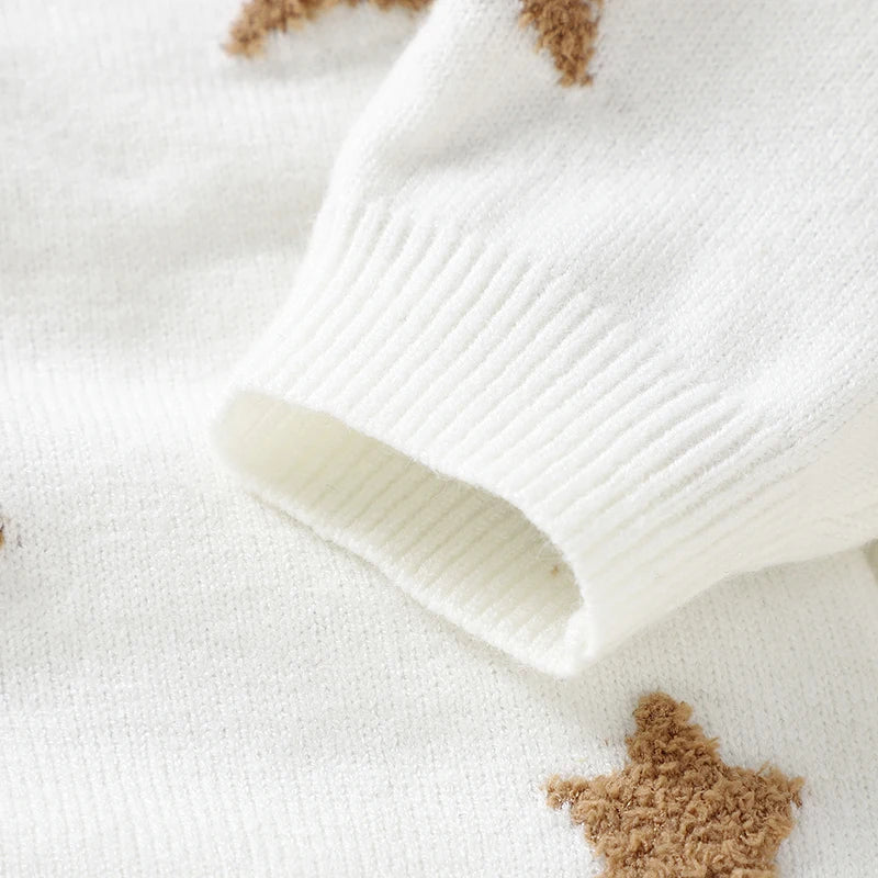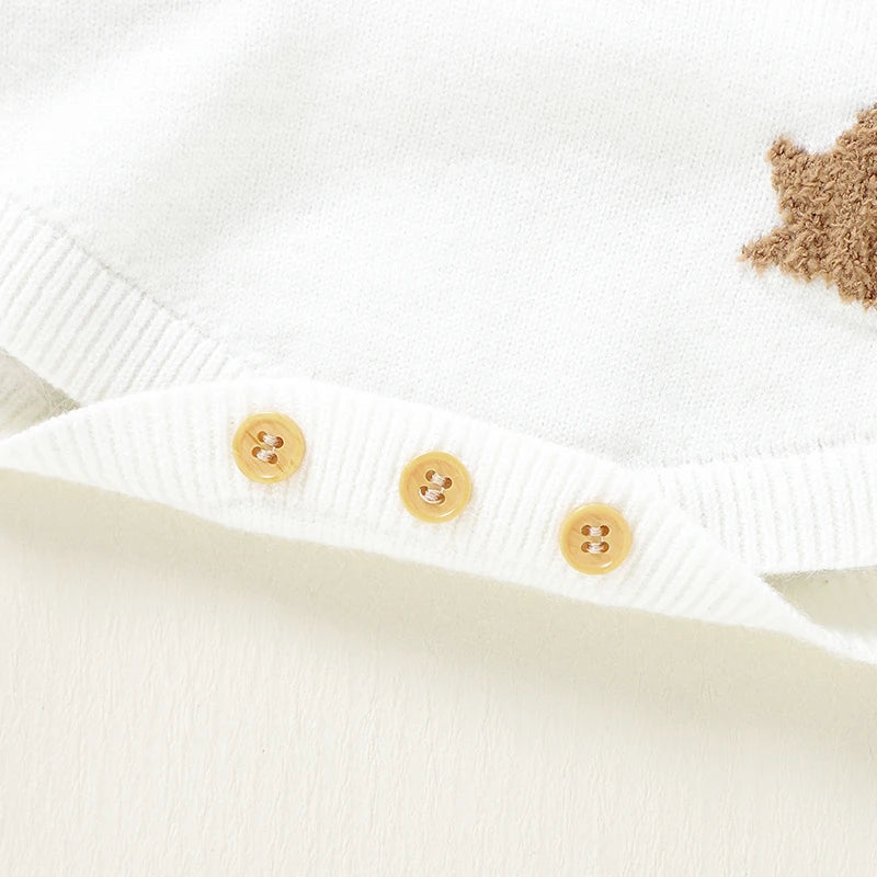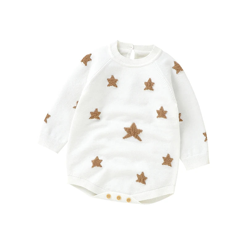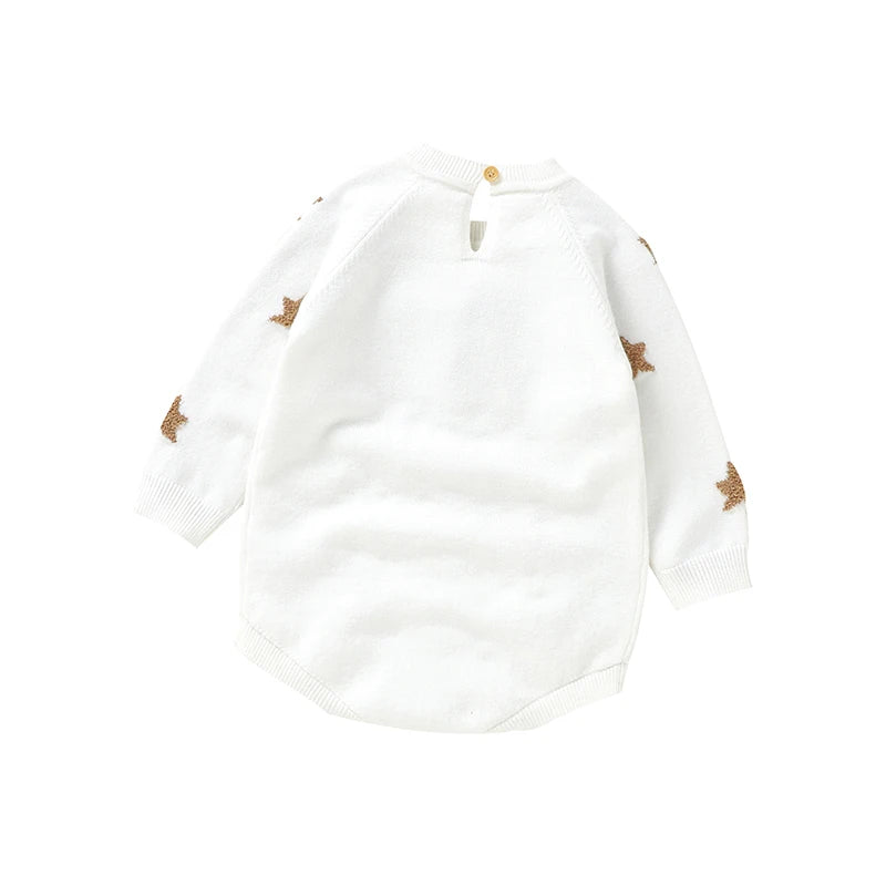 Macacão Curto em Tricot Branco com Detalhes de Estrela – Conforto e Encanto em Cada Ponto