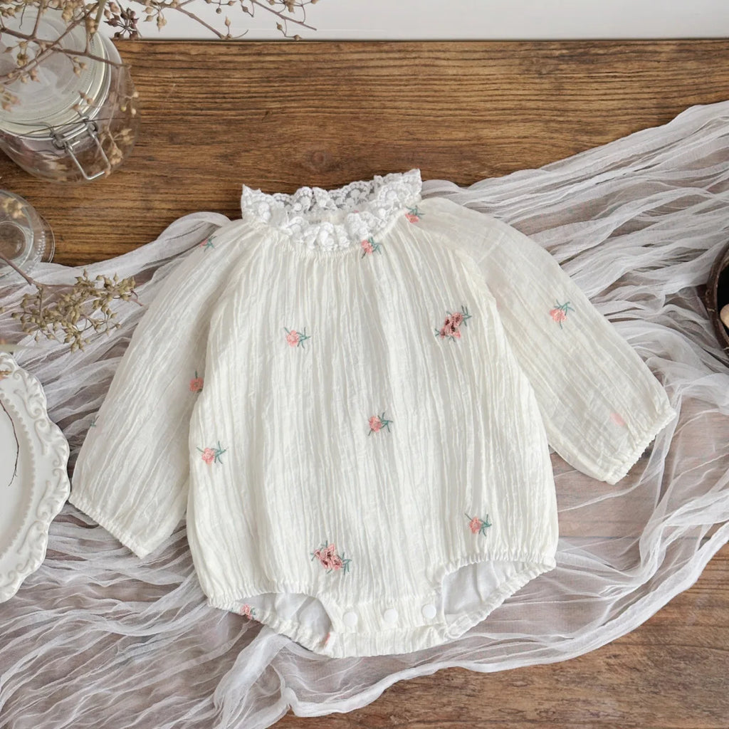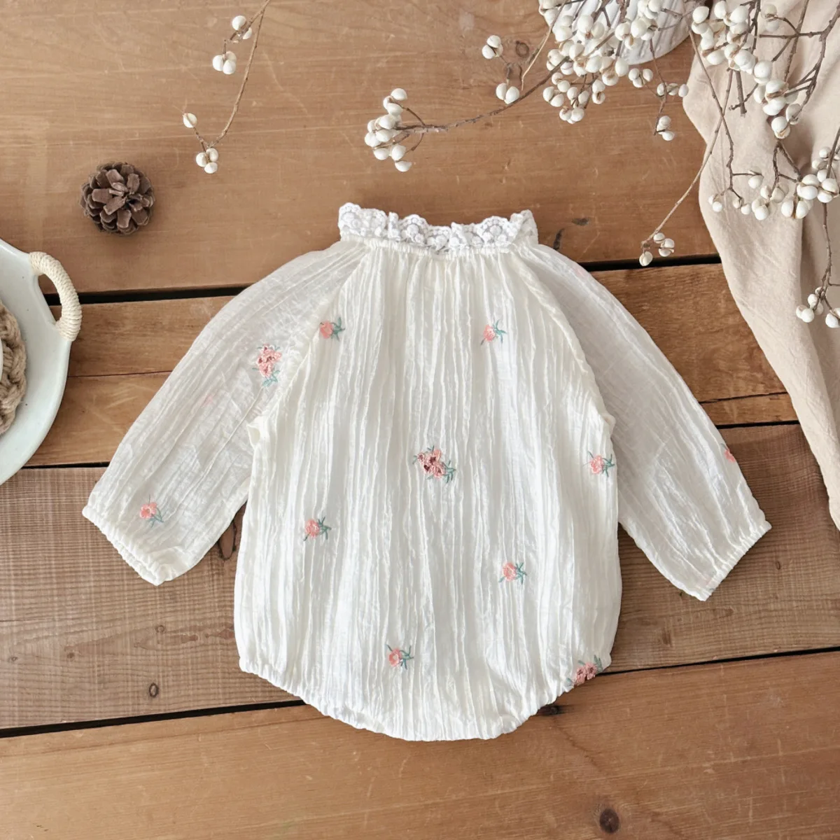 gola com rendas adiciona um charme clássico, enquanto as mangas longas ¾ tornam a peça perfeita para os dias de verão com aquele ventinho agradável. Um look fofo, prático e cheio de estilo!