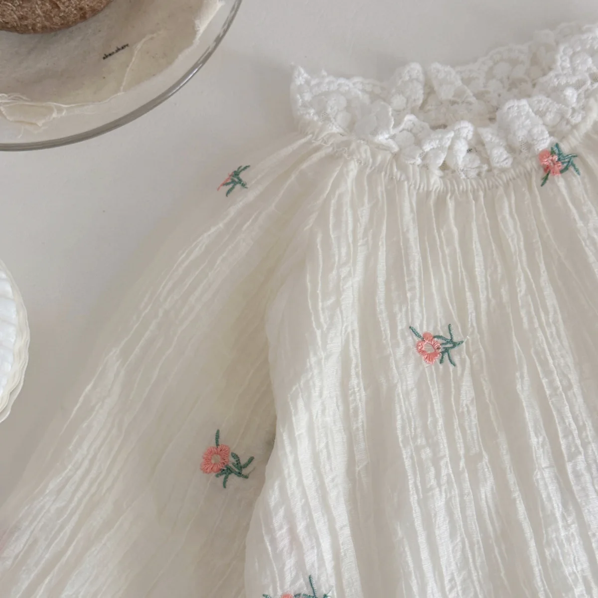 Com bordados florais sutis, ele traz um toque romântico e sofisticado, ideal para passeios, eventos especiais ou momentos de fotos inesquecíveis.