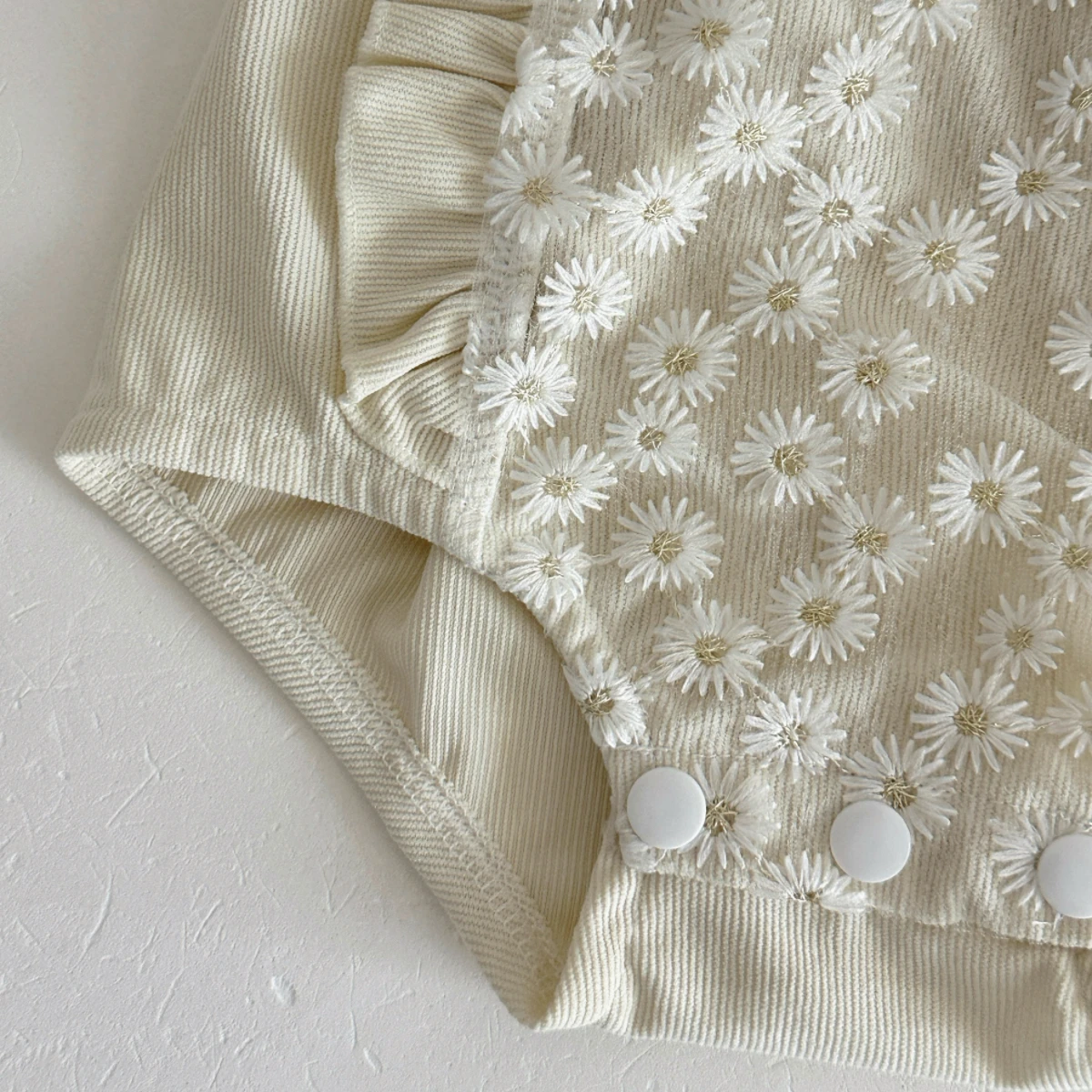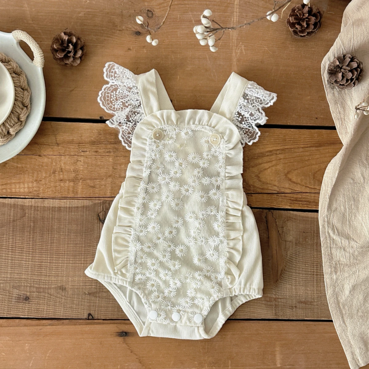 Encante-se com o charme desse macacão curto sem mangas, feito em viscose leve e macia, perfeito para manter sua bebê fresquinha e confortável em qualquer estação.