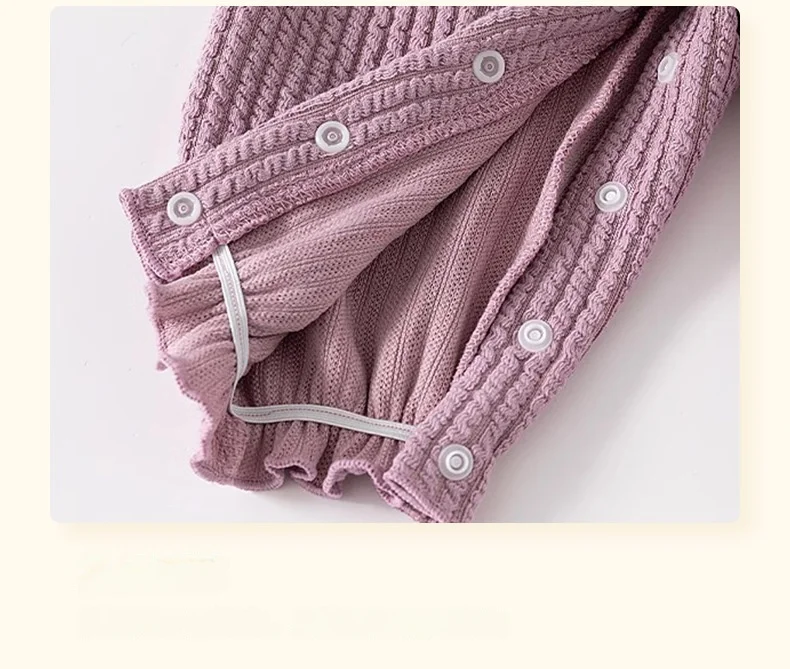 O fecho tipo pulôver e os botões de pressão na parte inferior facilitam as trocas de fraldas, enquanto os punhos elásticos garantem um ajuste confortável e seguro.