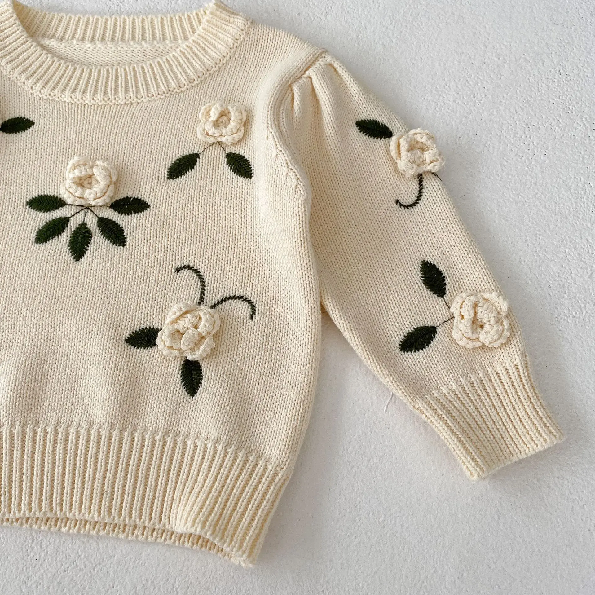Feito com tricot premium, ele traz bordados florais em crochê aplicados à mão — um toque encantador que transforma o look do bebê em pura ternura.
