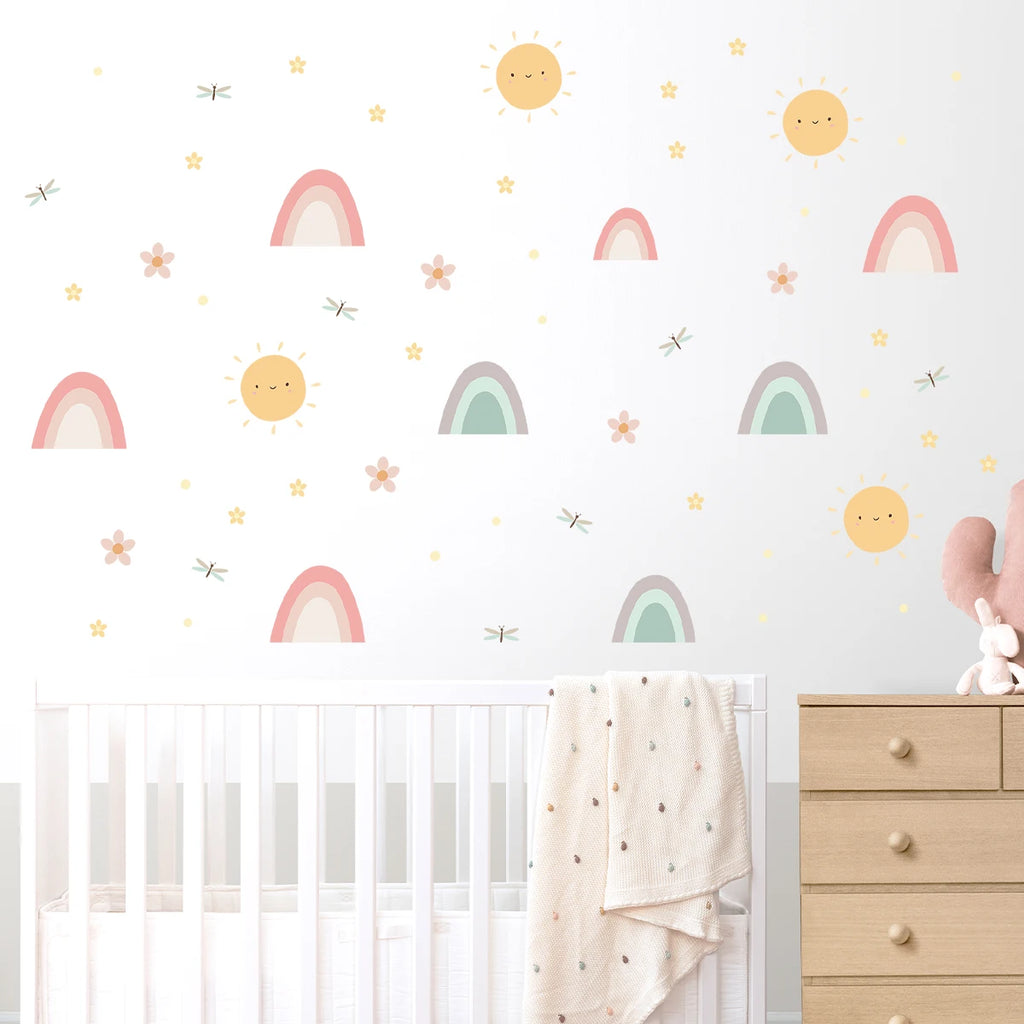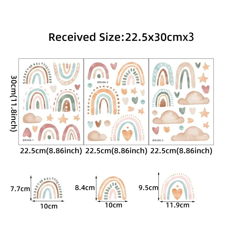 Transforme o cantinho das crianças em um espaço cheio de alegria e leveza com este kit de 3 adesivos de parede estilo boho.