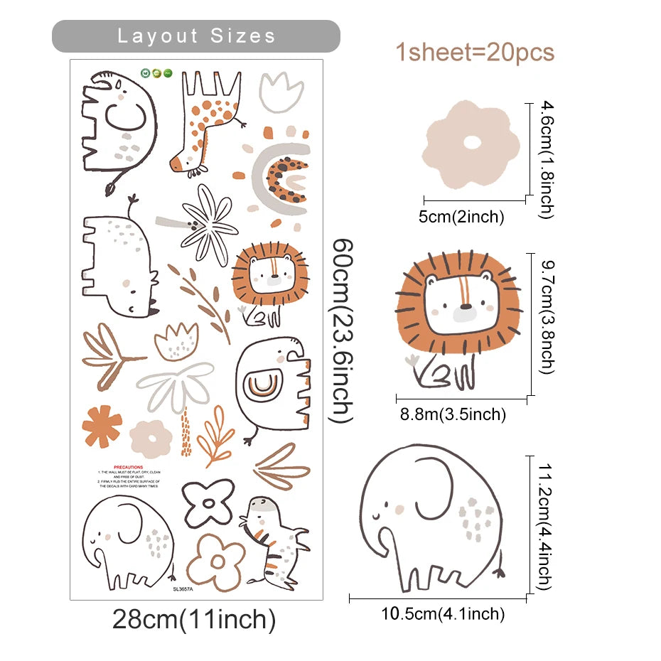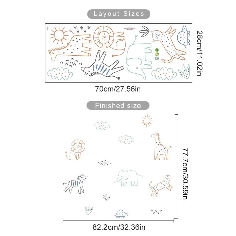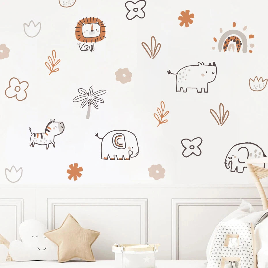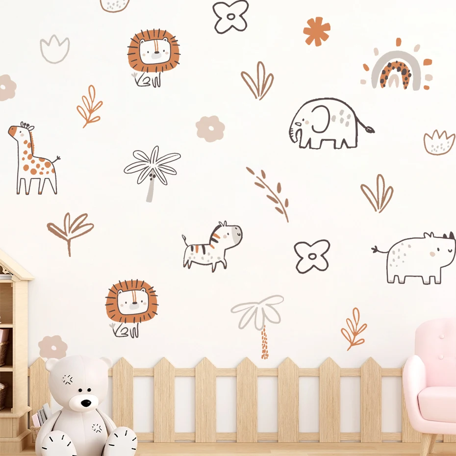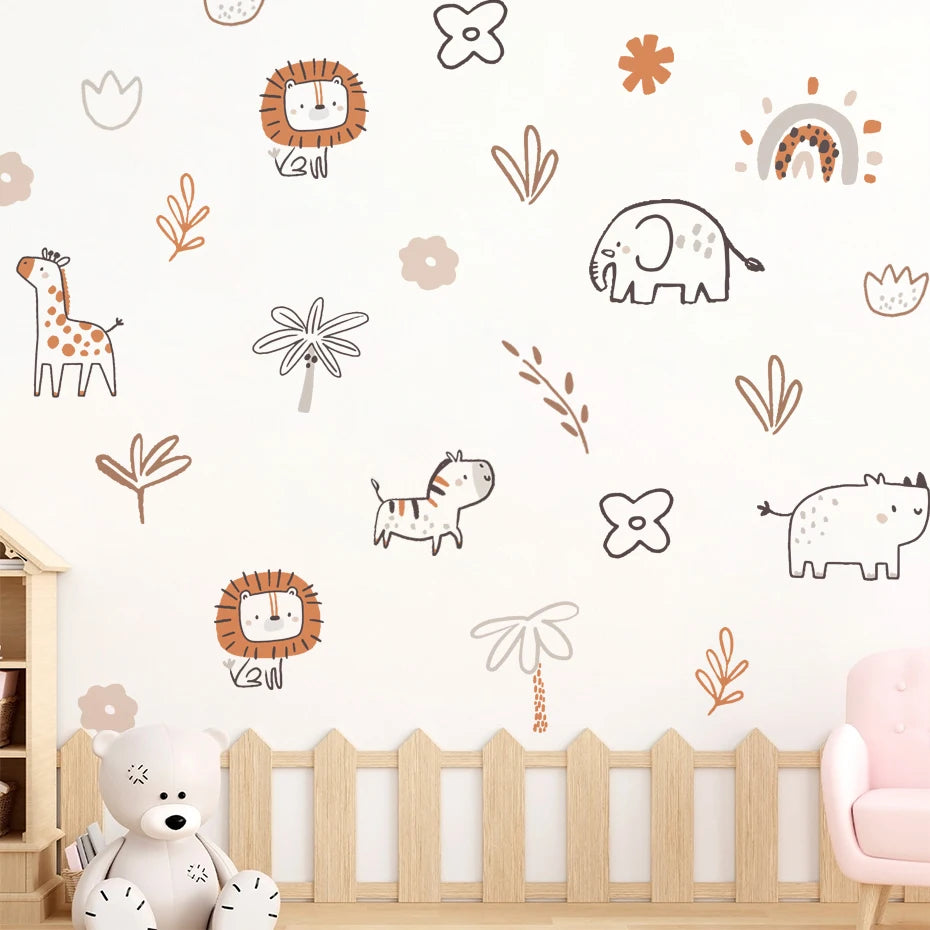 Estilo Trendy Boho: O design de desenhos animados fofos de animais da savana em traços de Aquarela combina perfeitamente com a decoração Boho e escandinava moderna.