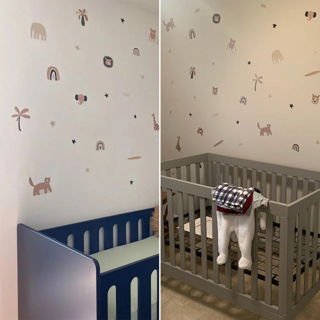 Dica AEZ BABY: Decalques e adesivos de parede são uma excelente maneira de criar interesse visual no quarto do bebê sem o compromisso da pintura. Use-os para definir um ponto focal, como a área do berço ou de leitura, e estimule o reconhecimento de formas e cores desde cedo!