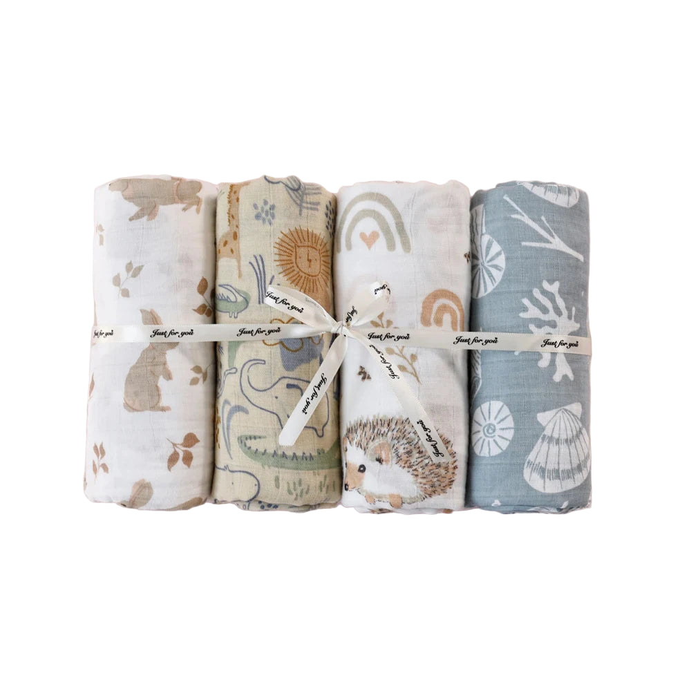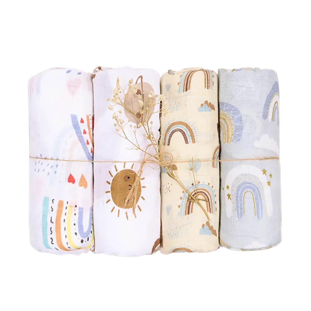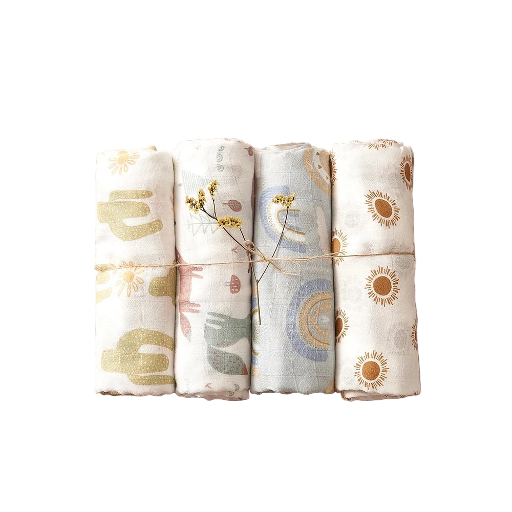 Conjunto 4 peças de swaddle em musselina de bambu e algodão