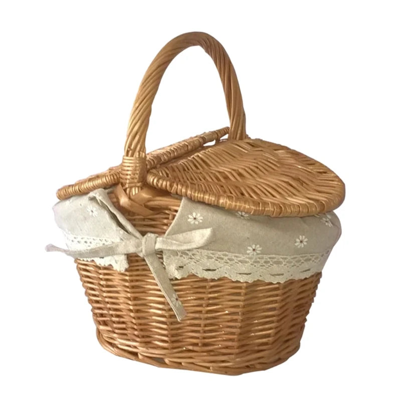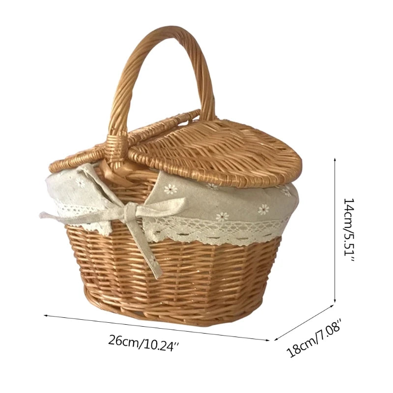 Praticidade no Uso: O design com tampa dupla (fecho com tampa) permite colocar ou retirar os itens com facilidade, e a alça de transporte alta e redonda facilita mover a cesta.